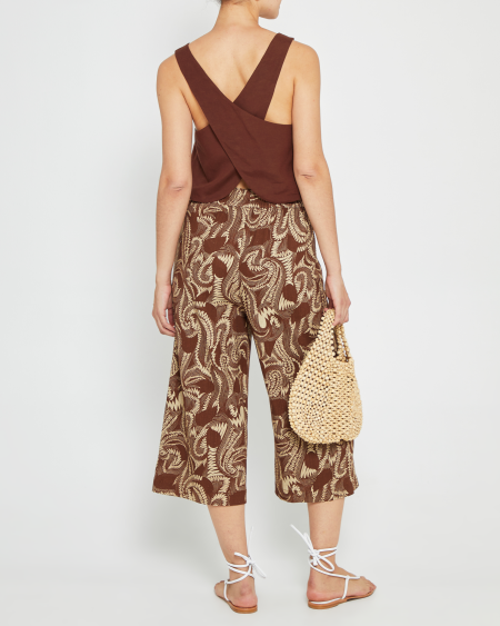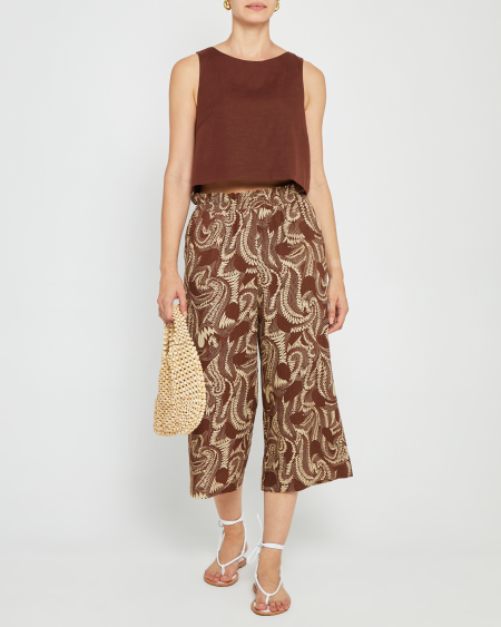 Easy, breezy, and chic this linen blend set is done with a relaxed fit. The shorts are made with a comfy elastic waist and the top has pretty tie straps.