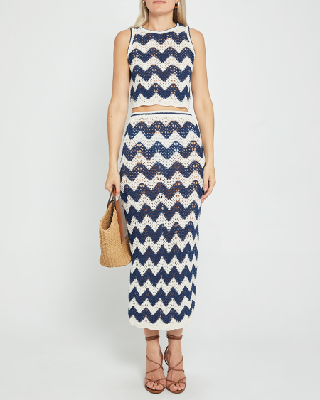 $384.00Product Details Stand out from the crowd with the Ellie Crochet Set. This chic and versatile set allows you to mix and match with your favorite pieces or wear together for the complete look. – Relaxed– Elastic waist skirt– Slightly cropped top– Side slit on the skirt– Content: 100% Recycled Polyester…